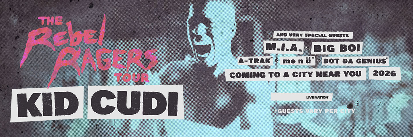 Grammy-Award winning rapper and songwriter Kid Cudi has announced ‘The Rebel Ragers Tour’, hitting over 30 cities in North America. Produced by Live Nation, the tour kicks off on Tuesday, April 28 at Talking Stick Resort Amphitheatre in Phoenix, AZ and continues with stops in Atlanta, New York, and more before wrapping up in Los Angeles at Crypto.com Arena on Saturday, June 27. M.I.A., Big Boi, A-Trak, me n ü, and Dot Da Genius.