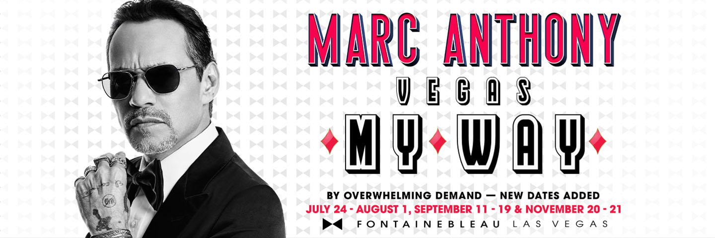 Marc Anthony’s acclaimed residency, “VEGAS… MY WAY!” at BleauLive Theater will return to the stage September 11, 12, 13, 16, 18 and 19 - coinciding with Mexican Independence Day weekend - as well as November 20 and 21, 2026. “VEGAS… MY WAY!” marks a defining chapter in Marc Anthony’s legendary career, offering an intimate, one-man show that brings audiences closer than ever to his energy, passion and soul. Backed by his dynamic live band, Anthony delivers an immersive journey through more than three decades of chart-topping hits, seamlessly blending English and Spanish-language favorites into a powerful, deeply personal live experience.