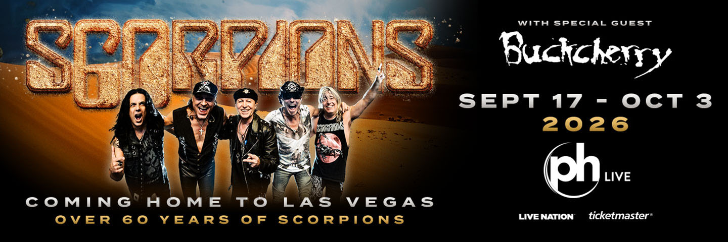 Scorpions, one of the most iconic and influential hard rock bands of all time, are returning to PH Live at Planet Hollywood Resort & Casino with an all-new headlining residency this September 17-October 3! Get ready for a full-throttle night of rock as special guest Buckcherry joins the legendary group in Las Vegas this fall.