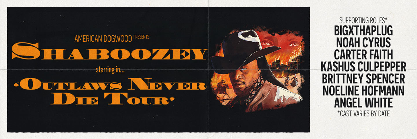 The GRAMMY®-winning, record-breaking singer-songwriter Shaboozey has announced the Outlaws Never Die Tour. Following its July 31 release, his new concept album The Outlaw Cherie Lee & Other Western Tales will come to life onstage alongside beloved hits as Shaboozey brings his lauded, high-energy show to theaters and arenas throughout America.